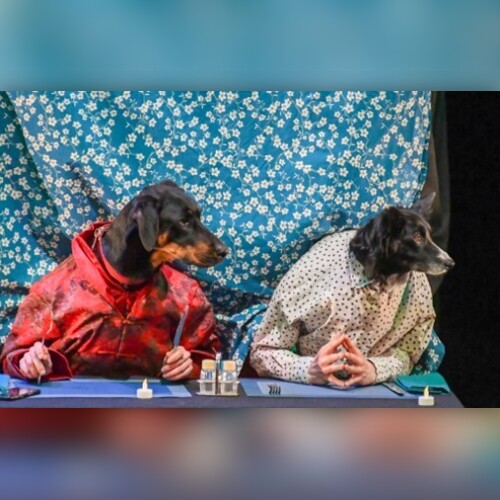 À l’origine, la Compagnie Des Plumés était, dans le paysage du cirque français, la grande spécialiste du dressage des poules savantes. Sautant du coq à l’âne, cette troupe de circassiens pas comme les autres délaisse la poulette au profit du toutou. Ouiiiii est un spectacle tendre et fou qui séduira les petits comme les grands, humains ou canins ! Il met en scène 10 acteurs : 5 artistes et 5 chiens. Et un musicien, aussi, qui compose en direct une bande-son géniale et indispensable ! On verra des chiens chanteurs, des saucisses lancées, des chorégraphies loufoques… Pas mal d’imprévus et autres moments de folie ! Loin de tout anthropocentrisme, c’est de connivence entre l’homme et l’animal qu’il s’agit ici. Basé sur des relations égalitaires de complicité et de jeu plus que sur l’idée de dressage, le talent des bipèdes sera de révéler la personnalité de chacun des quadripèdes. Ce qui anime cette grande famille mi-humaine mi-canine, au fond, c’est juste l’envie d’être ensemble et de jouer !